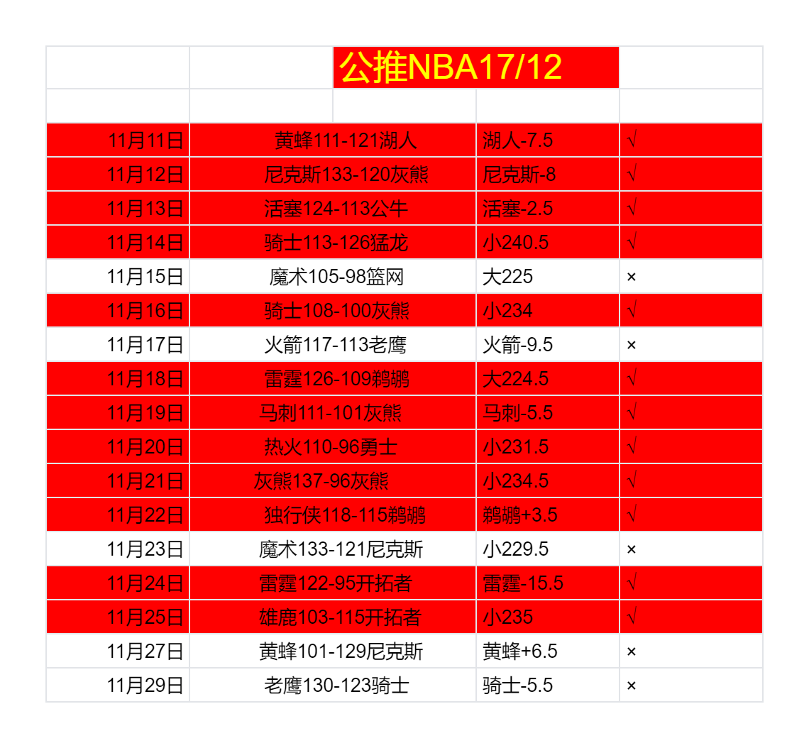 NBA每天一公推,这个月取得12胜5负不错的成绩,虽然上期没拿下,这期加油吧~