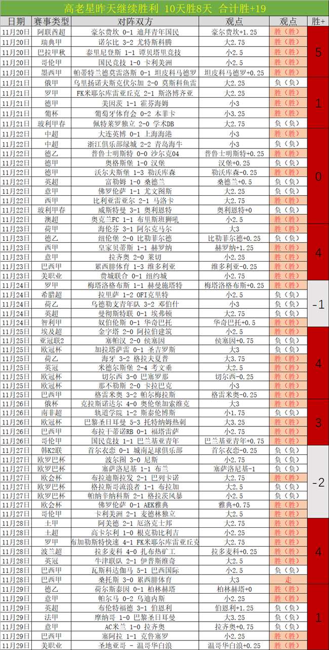 昨天继续胜利,连胜2天,10天胜8天胜+19,11月截至昨天胜+25,9月胜+11,10月胜+19,连续3月双位胜增长