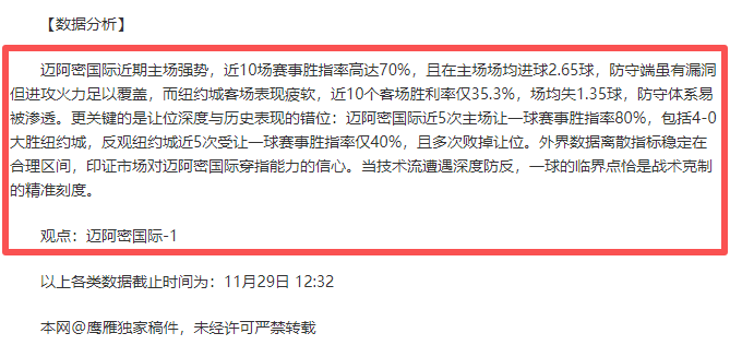 成绩回顾:昨日拿下一场美职业赛事。感谢一直以来的支持与陪伴,今天看好不错的赛事,强项赛事很有信心,鹰雁也曾创下19连胜的超高记录。愿大家在观赛的同时,也能收获满满的喜悦与惊喜,觉得还行的不妨继续关注,一起开启精彩的足球之旅。
