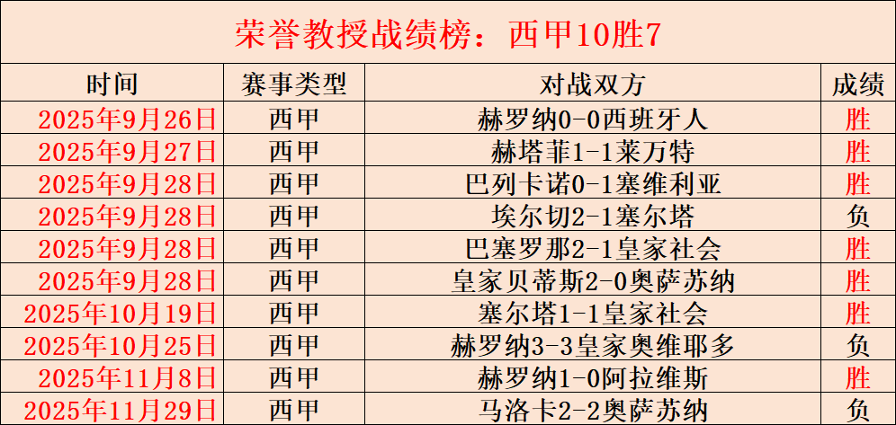 昨天5场仅失1,连胜4天+7!西甲10胜7!最高打下14连胜的表现已见证实力。今天继续奉上强项赛事系列,各线赛事都能保证清晰的解读思路与靠谱的选择方向!截至昨天荣誉教授已经有4305场解读经验,今天继续精选5场,多元化的赛事系列,以更高连胜胜利率绩迎接5000场记录来临,关注荣誉教授,成为荣誉教授的好伙伴!