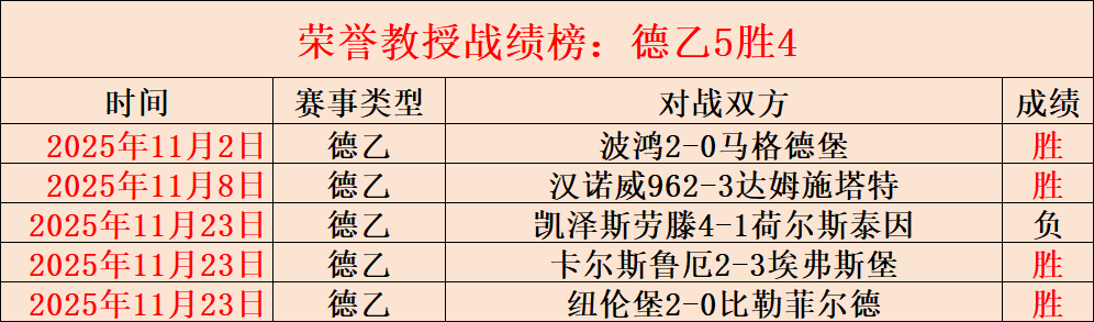 昨天5场仅失1,连胜4天+7!德乙5胜4!最高打下14连胜的表现已见证实力。今天继续奉上强项赛事系列,各线赛事都能保证清晰的解读思路与靠谱的选择方向!截至昨天荣誉教授已经有4305场解读经验,今天继续精选5场,多元化的赛事系列,以更高连胜胜利率绩迎接5000场记录来临,关注荣誉教授,成为荣誉教授的好伙伴!