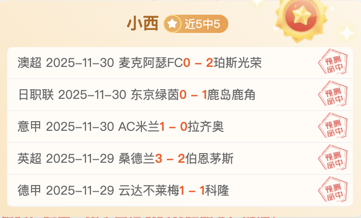 战绩回顾:战绩回顾:昨日表现出色,是6战5胜,目前是取得了6连胜的出色战绩,今天的比赛质量还是相当不错的,选出一场小西擅长的意甲比赛,加油!