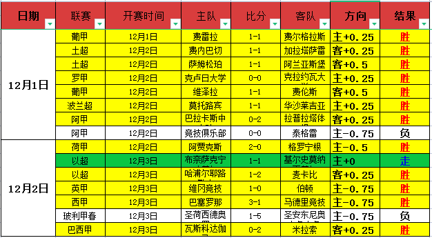 昨天表现炸裂,整体拿下7胜5走1净+4!昨天数据中,荷甲的表现非常出色,完美的大胜拿下!以超的表现出色,2场都完美的打出,非常的给力!而英甲、西甲和巴西甲的表现同样精彩,都完美的打出,非常的给力!
