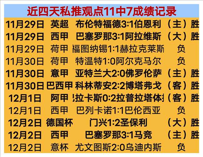 【战绩回顾】近四天私推观点表现稳定,总计拿下11胜7整体向上↑。本场意大利杯作为福利回馈粉丝,文末赞赏获取更精准的临场观点,包周更优惠!