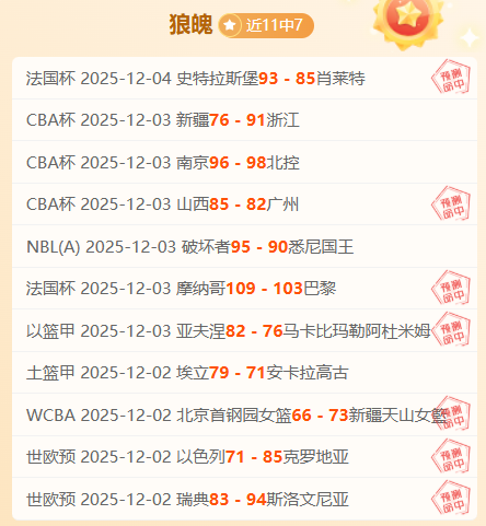 【成绩回顾】近11胜7,昨日CBA杯、法国杯取胜,深夜赛事连胜势头给力!新一期赛事继续关注赛事延续胜利,作为本网资深作者和篮球分析师实力有目共睹,擅长拆解数据用意,连胜佳绩历历在目,笔者将再接再厉争取得更佳战绩回馈粉丝,本场比赛将精选一场优质情报,敬请关注。