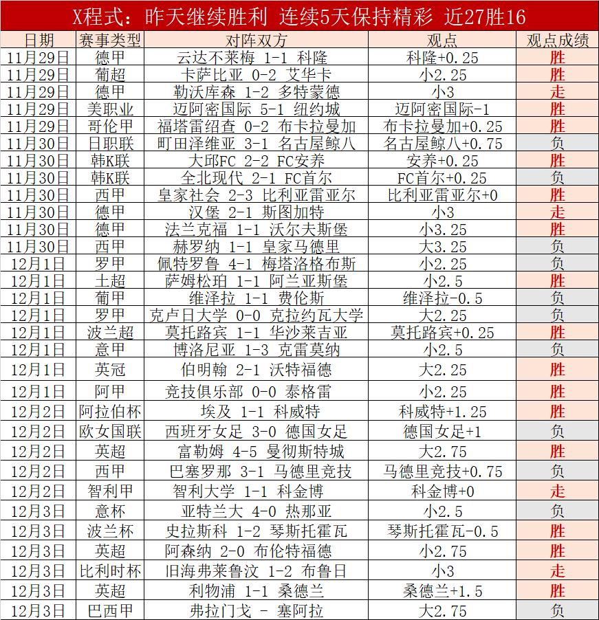昨天继续胜利发挥,连续5天保持精彩发挥,近27胜16场,目前状态十分优质!