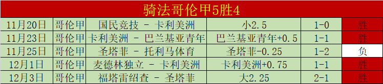 哥伦甲5胜4,美洲赛事一直发挥非常出色的。昨天5胜4,近20胜16天胜+28,现在发挥非常出色,在疯狂飙胜+