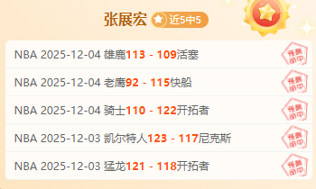 昨天3场NBA赛事取得全胜!近期5连胜!张展宏继续深挖数据,不吹不擂真实成绩有目共睹。继续为大家送上高质量和专业的赛事理解,敬请大家关注!