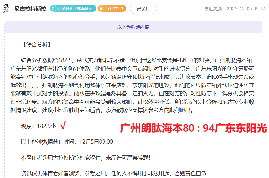 【成绩回顾】昨拿下三胜!CBA杯二胜+韩篮甲胜,信心赛事多项拿下连胜!尼古拉资深作者情报解读再有方法,信心强项情报解读连胜赛事再次出发,长期解读惊喜不断,此前作者创下4次双位数胜战绩,掌握着一手赛事资深情报,本期继续分享充满奇妙体育赛事,敬请大家持续关注!!