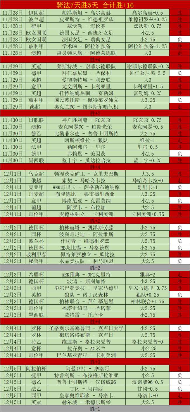 近7天胜5天胜+17,近22胜17天胜+31,近两个周末四天合计胜+16,周末非常精彩