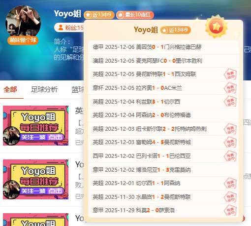 【上期回顾】:昨天私推暂停(今晚补发),可惜公推澳超失利,近6胜5!而超级重点德甲方案同样未能如愿,近8胜5的表现尚可!——今天核心赛事已确认,信心依旧,各位可点击一下【赞赏】按钮给予鼓励,轻松在“站内信”获取当天新鲜信心专场哦!多一份参考离喜悦再近一步,Yoyo将继续率粉粉们继续前行~