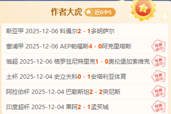 成绩回顾:近6中5!状态还是相当不俗的,今天只分享信心比赛给大伙,希望大家持续关注作者大虎。