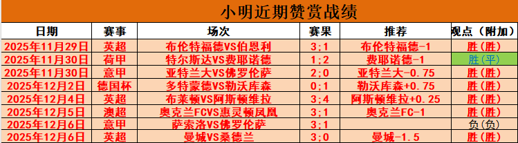 【上期回顾】昨整体9胜5,精选7胜4,柏、悉尼、国米、维拉全出,近5胜3;赞赏2胜1,曼城打出,赞赏8对7。昨王牌国米拿下,王牌11胜9,精选净增1场,周日求稳为主,加油!