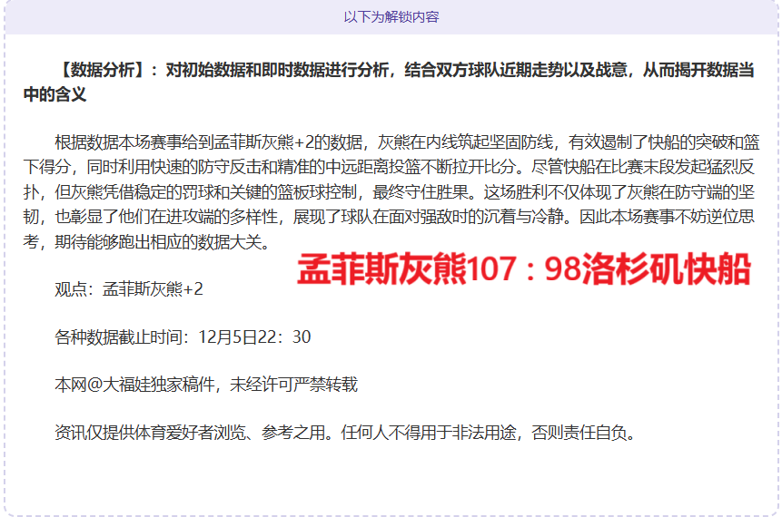 解锁内容包括:双方走势分析+综合分析+观点