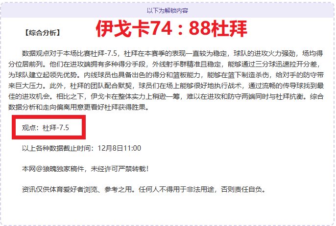 解锁内容包括:综合大数据分析+分解赛事走向+比赛建议+作者观点数据