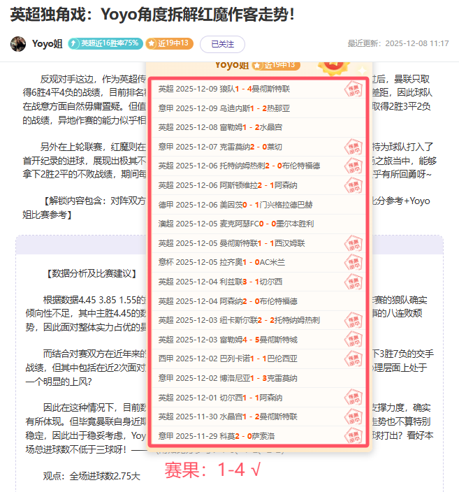 【上期回顾】:昨天私推暂停,而公推意甲乌鸡失利很可惜,近9胜7!而超级重点英超方案多进球成功拿下重振旗鼓!——今天核心赛事已确认,信心依旧,各位可点击一下【赞赏】按钮给予鼓励,轻松在“站内信”获取当天新鲜信心专场哦!多一份参考离喜悦再近一步,Yoyo将继续率粉粉们继续前行~