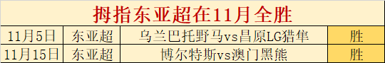 东亚超11月全胜成绩,特别清晰的赛事分析。近期状态十分出色,拿下14胜9的高胜利标识