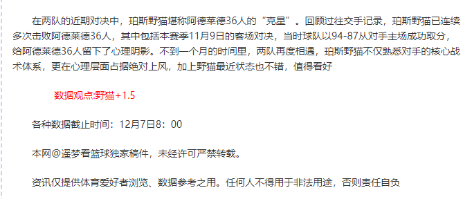 上轮成功拿下,野猫三节打完领先十几分,最后还被逆转,但是最终守住底线,危险拿下,今天这场信心依然足。~~
