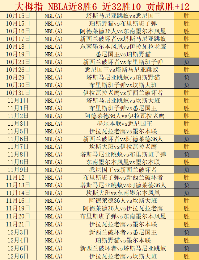 NBLA8胜6,近32胜22,贡献胜+12超级精彩的胜利。昨天拿下5胜4,近19胜13,胜+7,状态很好,疯狂取胜时刻再度降临!