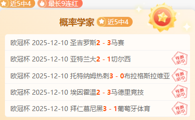 战绩回顾:5胜4,昨天送出5场欧冠取得5胜4的成绩,继前天4胜3的成绩后继续取得相当理想成绩。大家可以点点关注,建议不要单单挑选某一场比赛,某一篇文章,要留意概率送出的每一场比赛,这样就可以更好地与概率同步,可以长期取得正向的收获。