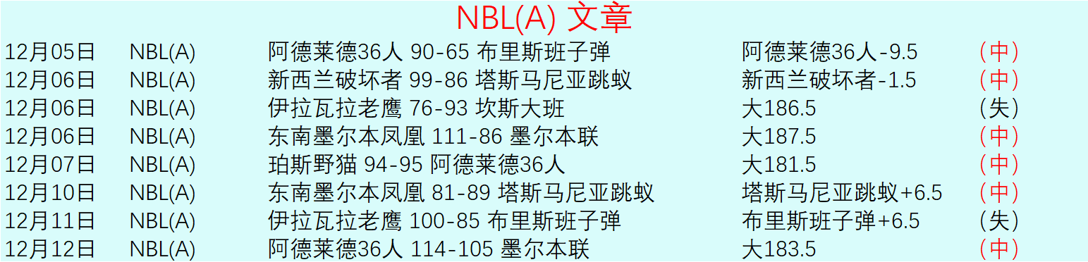 新西兰破坏者上赛季是10胜19负,进攻端85数据左右,防守端91数据左右,防守端漏洞百出,新西兰破坏者主场是6胜9负,客场是4胜10负,上赛季无缘季后赛。休赛期,有引进一些球员,但同时也有一些球员离队,近期新西兰破坏者的一些比赛情况,2025-12-06新西兰破坏者99-86 [52-41]塔斯马尼亚跳蚁,2025-12-03新西兰破坏者95-90 [49-47]悉尼国王,2025-11-22坎斯大班96-102 [44-47]新西兰破坏者,一起看看。