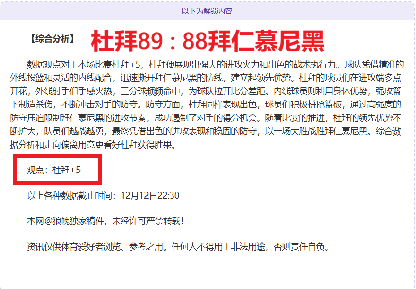 解锁内容包括:综合大数据分析+分解赛事走向+比赛建议+作者观点数据