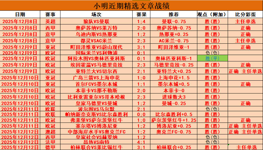 【上期回顾】昨精选4胜2,奥克兰、柏林联合打出,本周5天21胜17,五星近11胜9。昨表现持平,这一周文章正确率都十分优秀,周六好比赛不少,王牌和五星赛事都有,加油冲!