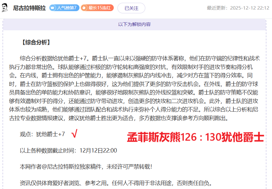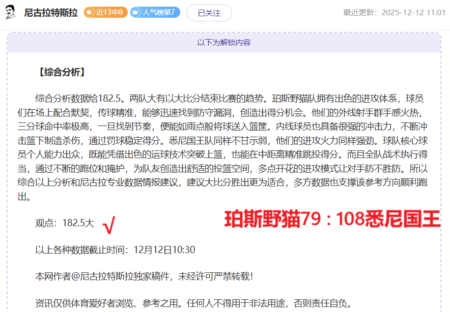 解锁内容包括:综合分析+比赛建议(数据观点+附加观点)