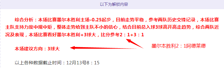 解锁内容包括:综合分析+胜负观点+比分观点