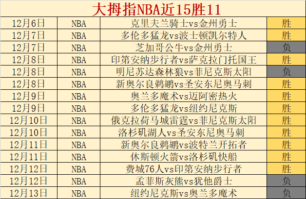 NBA15胜11,NBA非常精彩。近8天胜7天,近39胜25,胜+11,状态很好,现在就是疯狂取胜时刻