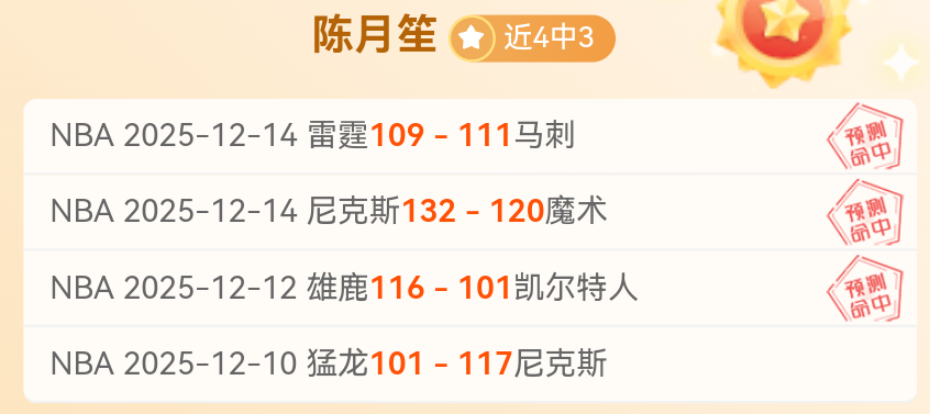 昨天月笙给大家参考了2场NBA杯赛的比赛,首战的尼克斯大胜魔术拔得头筹,次战的马刺更是强势发挥大比分逆转战胜实力强劲的雷霆,两场杯赛半决赛强势拿捏。月笙近期参考来到4胜3,状态还算可以。明天NBA常规赛继续上演,有8场比赛,看其中1场,力争连胜。