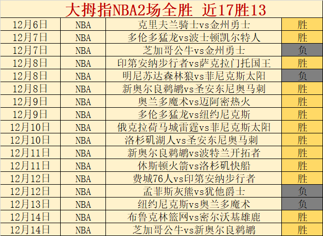 NBA昨天全胜,6号至今9天时间NBA有4天全胜,目前NBA17胜13,超级精彩。昨天拿下胜利成绩,近9天胜8天,近44胜28,胜+12,状态很好,现在就是疯狂取胜时刻