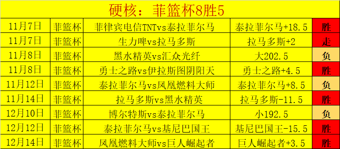 菲篮杯10月至今进行了16场分析,经验丰富,整体15胜9,近8胜5,表现也出色!