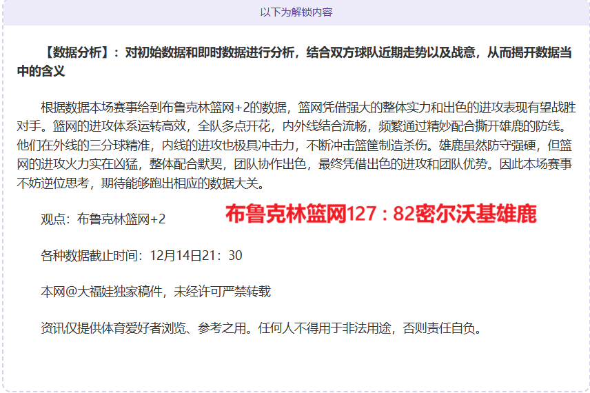 【基本面分析】:包括双方球队状态、阵中情况的多项数据分析