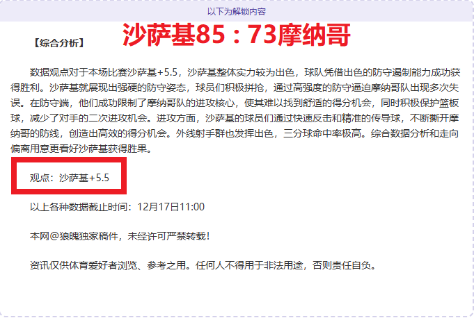 解锁内容包括:综合大数据分析+分解赛事走向+比赛建议+作者观点数据