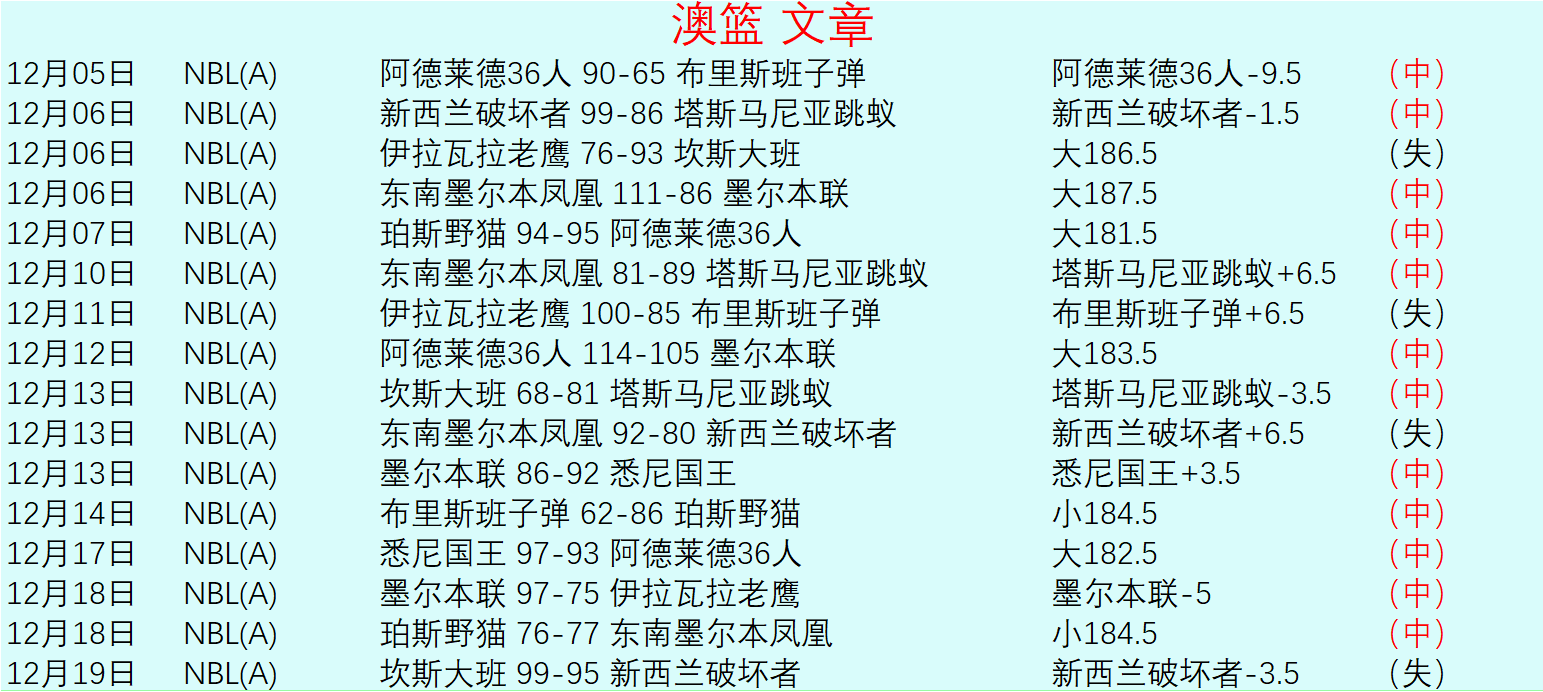 儒墨心语:做好做足功课,认真分析每一场赛事,争取更好的回馈大家的期待,加油。近期文章,西篮甲3中3,澳篮16中12,韩篮甲2中2,CBA4中3,Euro5中3,足球8中6,