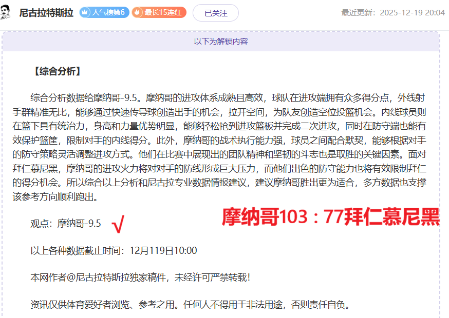解锁内容包括:综合分析+比赛建议(数据观点+附加观点)