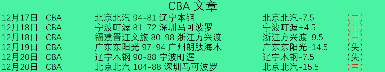 儒墨心语:做好做足功课,认真分析每一场赛事,争取更好的回馈大家的期待,加油。近期文章,西篮甲3中3,澳篮19中14,韩篮甲4中3,CBA6中4,Euro5中3,足球9中6,