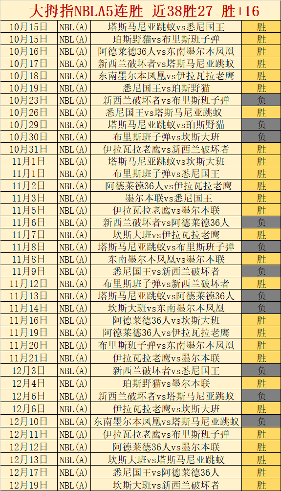 NBLA5连胜,近38胜27,贡献胜+16,NBLA长期十分出色。昨天拿下5胜4,16天胜11天合计胜+17,胜+疯狂暴涨时刻