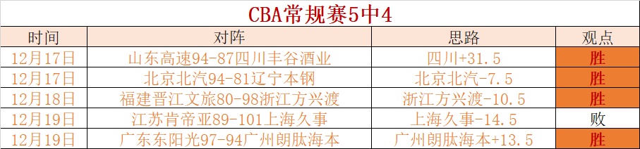 一、战绩回顾:CBA常规赛5中4,今天继续分享篮球赛事,有需要的朋友请查收。