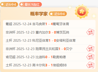 战绩回顾:昨天非洲杯的比赛全胜;近6胜4,状态相当不俗;今天笔者继续送上信心的非洲杯场次。大家可以点点关注,建议不要单单挑选某一场比赛,某一篇文章,要留意概率送出的每一场比赛,这样就可以更好地与概率同步,可以长期取得正向的收获。