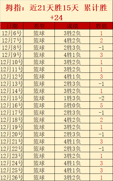 昨天继续胜利,连取4天胜利,近16场胜12场,近21天胜15天合计胜+24,非常惊人的胜+表现