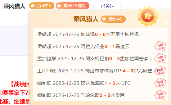 【战绩回顾】豪取6胜5,研究良久+临场思路很清晰,周末火热来袭!今日比赛质量佳!乘胜追击,信心强烈,全力分析,只王牌精研有把握的比赛,继续拿下,加油冲全胜!欢迎长期关注乘风。