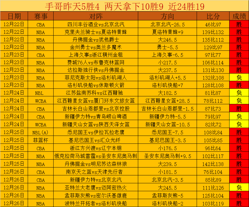 昨天5胜4,前天5场全胜,近24场胜19场优质成绩,奉献胜+13