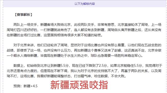 以下为解锁内容:含赛事解析+数据分析+观点参考