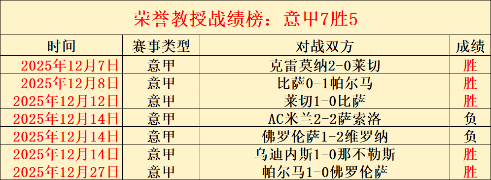 昨天意甲顺利打出,意甲7胜5!最高打下14连胜的表现已见证实力。各线赛事都能保证清晰的解读思路与靠谱的选择方向!截至昨天荣誉教授已经有4445场解读经验,今天继续精选5场,多元化的赛事系列,以更高连胜胜利率绩迎接5000场记录来临,关注荣誉教授,成为荣誉教授的好伙伴!
