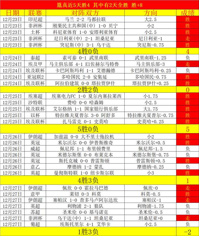 近5天胜4天合计+8,其中有2天全胜,月底开始喷发级别胜利。11月胜+13,10月胜+12,月发挥非常出色