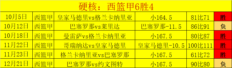 西篮甲近6胜4,西篮甲表现出色。昨天胜利,近5天胜4天,近25胜18,胜+11,目前状态非常优质