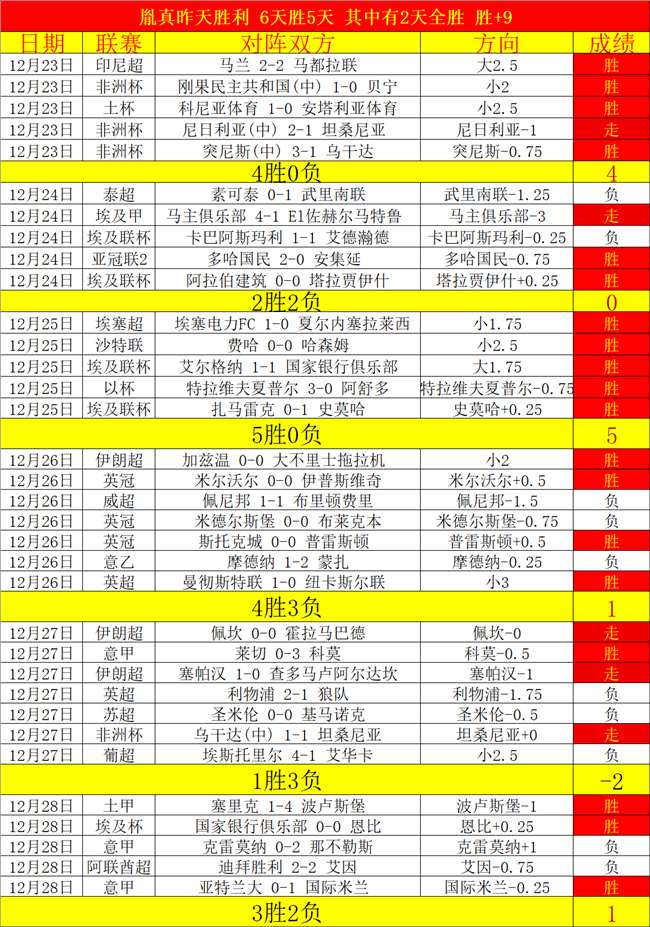 昨天胜利发挥,6天胜5天合计+9,其中有2天全胜,目前状态值得认可。11月胜+13,10月胜+12,月发挥非常出色