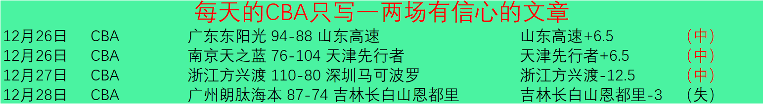 【CBA重点】每天的CBA只写一两场有信心的,精益求精,认真分析,提高命中率。